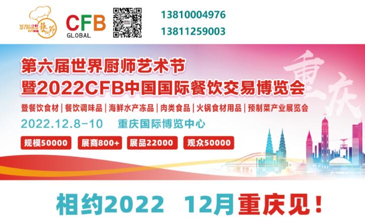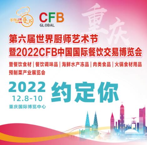 為更好的打造全球餐飲一站式采購交易平臺,“第六屆世界廚師藝術節(jié)暨2022CFB中國國際餐飲交易博覽會”將移師“國際消費中心城市”“中國火鍋之都、美食之都和餐飲食材標準化生產(chǎn)強省與餐飲食材交易的天然集散地”重慶,于2022年12月8-10日在重慶國際博覽中心隆重舉辦,展出面積36000平米,匯集全球800家餐飲產(chǎn)業(yè)鏈品牌企業(yè)的22000多種餐飲產(chǎn)業(yè)鏈優(yōu)質(zhì)產(chǎn)品,60余項國際合作項目、20余場同期活動,5000余餐飲行業(yè)領袖及餐飲專業(yè)觀眾近50000萬余人, 150余家主流媒體+餐飲行業(yè)媒體聚焦此次盛會。