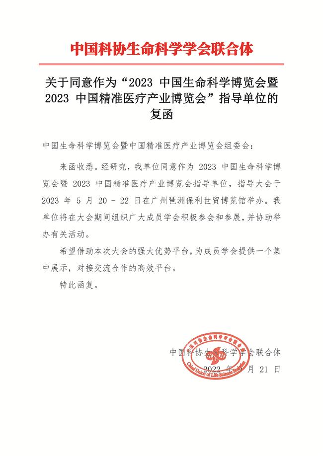 由中國(guó)科協(xié)生命科學(xué)學(xué)會(huì)聯(lián)合體指導(dǎo),中國(guó)生命科學(xué)博覽會(huì)組委會(huì)、中國(guó)精準(zhǔn)醫(yī)療產(chǎn)業(yè)博覽會(huì)組委會(huì)、UCOM、廣東省器官醫(yī)學(xué)與技術(shù)學(xué)會(huì)主辦的2023中國(guó)生命科學(xué)博覽會(huì)暨2023中國(guó)精準(zhǔn)醫(yī)療產(chǎn)業(yè)博覽會(huì),同期舉辦:大灣區(qū)科學(xué)論壇·生命科學(xué)論壇、中國(guó)腫瘤防治年會(huì)、中國(guó)精準(zhǔn)醫(yī)學(xué)大會(huì)、中國(guó)生命科學(xué)大會(huì)定于2023年5月20日-22日在廣州琶洲保利世貿(mào)博覽館召開(kāi)。此次會(huì)議計(jì)劃邀請(qǐng)10-20位院士參與,會(huì)議內(nèi)容涵蓋精準(zhǔn)醫(yī)學(xué)、檢驗(yàn)醫(yī)學(xué)、腫瘤學(xué)、生命科學(xué)等領(lǐng)域最新研究成果和發(fā)展趨勢(shì)。