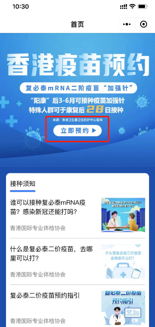 臨近春節(jié),在疫情的影響下,作為目前全球主流的加強針疫苗,復(fù)必泰mRNA二價疫苗一直都備受關(guān)注,由于內(nèi)地還沒有引進,通關(guān)在即,為了自身健康,很多人都選擇赴港打疫苗。作為香港政府認(rèn)可的新冠疫苗接種機構(gòu)之一-“香港國際專業(yè)體檢協(xié)會”,在提供疫苗的同時,更是提供了便捷的預(yù)約渠道,搜索微信小程序“港約易”點擊立即預(yù)約,或者直接識別二維碼即可進行復(fù)必泰二價疫苗個人接種預(yù)約。避免通關(guān)時人數(shù)激增,排隊延長,導(dǎo)致變異毒株趁虛而入,危害健康!