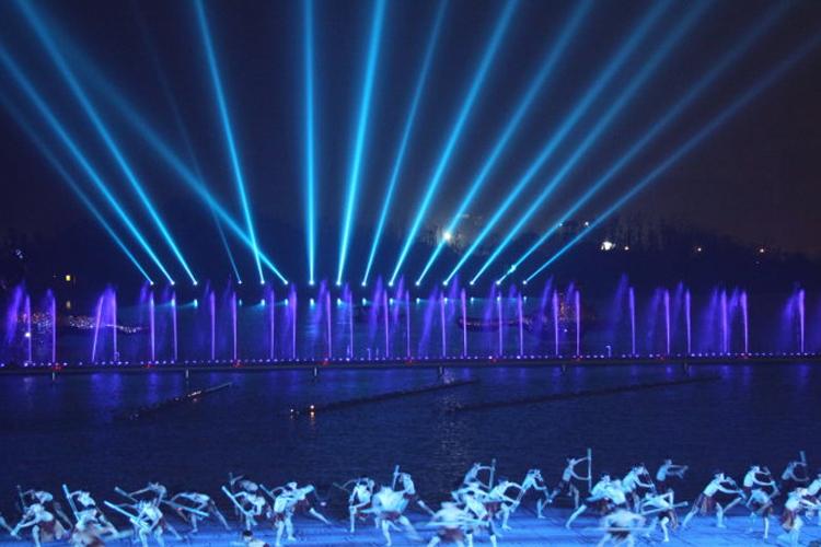 實景演出、城市光影秀都是舞臺燈光逐步放大的過程,但有一定差別,差別首先在于燈光演繹的范圍,實景環(huán)境中燈光演繹的范圍和規(guī)模大大拓展,光影秀的燈光設(shè)計師需要在實景基礎(chǔ)照明之上做加法,很多舞臺上的運用手段需要做調(diào)整。同時,景觀照明是一種特殊的照明形式,它對自然、人文特色要求更高,對燈具選用嚴苛,對照明工程實施標準制定精細。照明規(guī)劃要根據(jù)景區(qū)特色突出重點、造型美觀,還要考慮節(jié)能環(huán)保、經(jīng)濟安全等因素,避免光污染。另外,景觀照明的功能要明確,不同色彩和照射方式的燈光表達出的情感有冷暖、輕重之分,可以營造不同氛圍的空間。