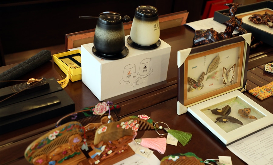 在旅游商品展區(qū),展示內(nèi)容包含
