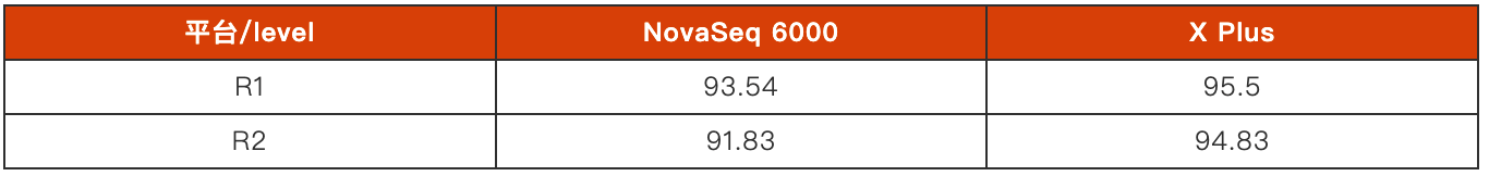 此外,受益于X Plus技術的提升,下機數(shù)據(jù)的Q30也得到了一定程度的提升。對于堿基平衡文庫,X Plus在Q30上的表現(xiàn)也會更好。相較于NovaSeq 6000,X Plus在R1端和R2端的Q30更為接近,隨著測序階段的前進,Q30變化極小。