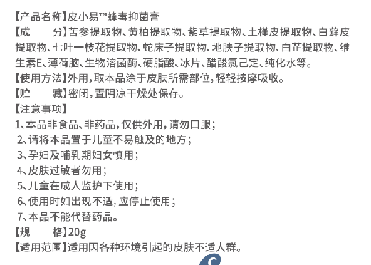 【產(chǎn)品名稱】:皮小易峰毒抑菌膏