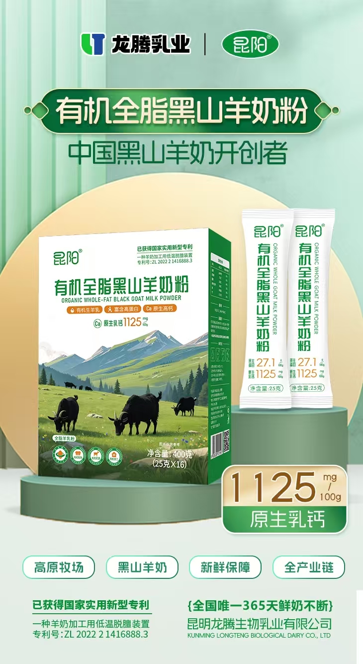 【產(chǎn)品名稱】:昆陽有機全脂黑山羊奶粉